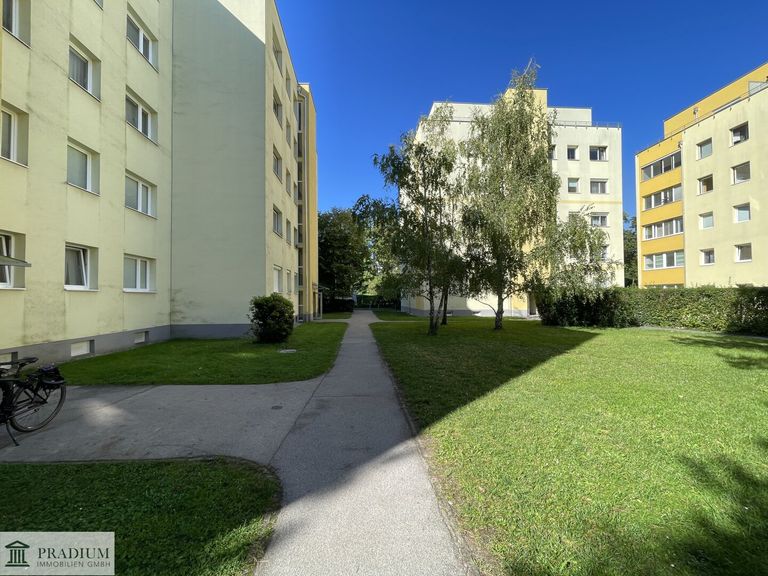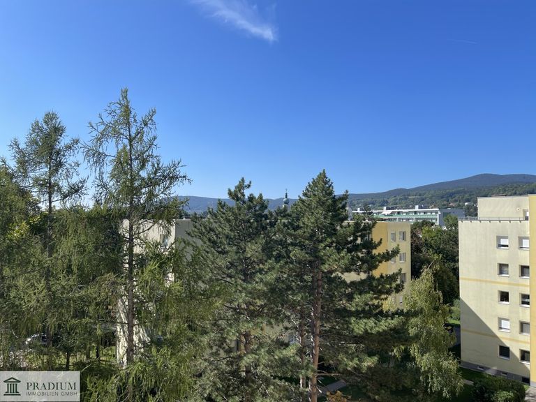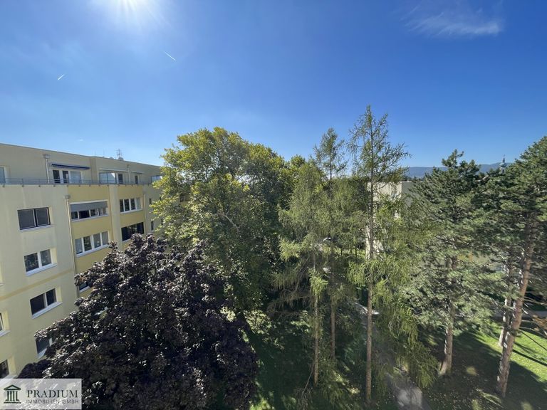 Willkommen in Ihrem neuen Zuhause – der 3 Zimmer-Wohnung, die modernen Wohnkomfort mit der besonderen Lebensqualität Badens verbindet. Durch die Lage auf der hinteren Seite der Wohnhausanlage hat man einen wunderbaren Blick über das Strandbad auf den Mitterberg. Von der Loggia hat man einen seitlichen Weitblick auf den Römerberg.