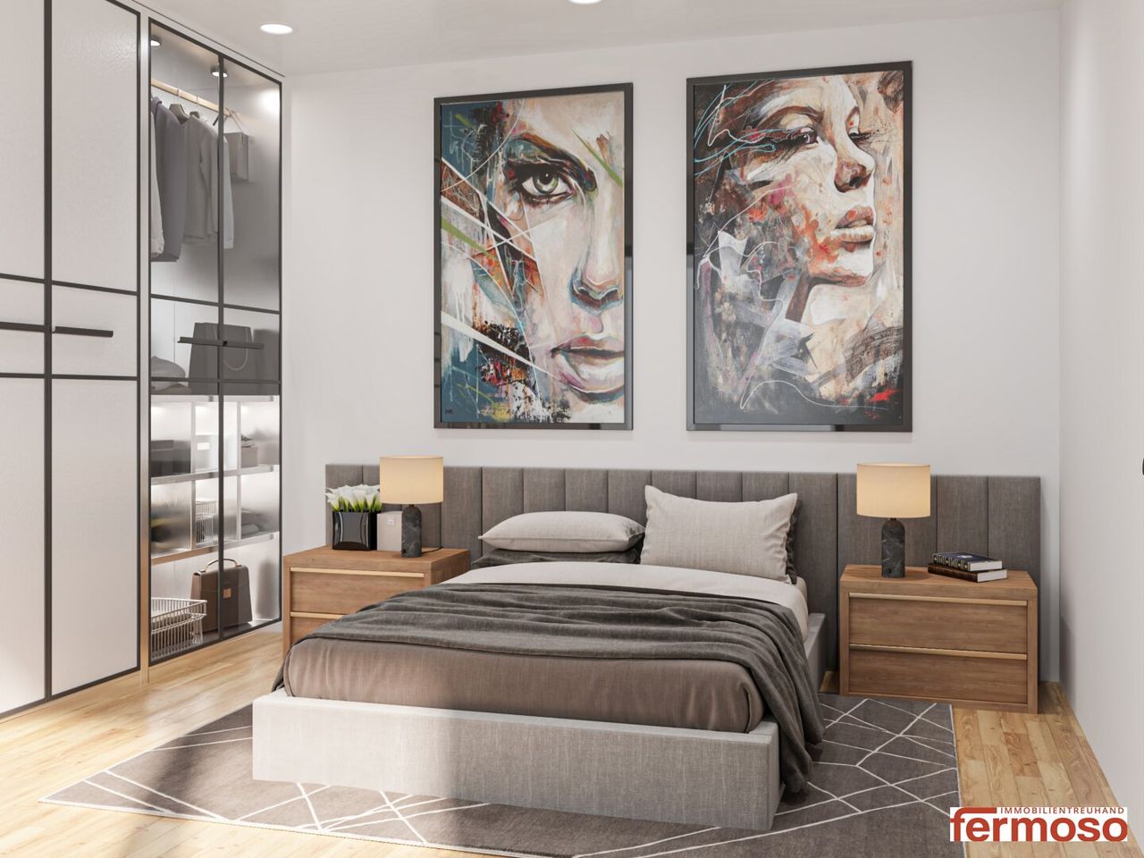 Schlafzimmer (13,84 m²) – ruhig gelegen mit guter Aufteilung