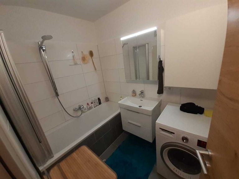 Die Wohnung ist mit einer modernen Einbauküche ausgestattet, die nicht nur funktional, sondern auch stilvoll ist. Hier können Sie Ihre Kochkünste ausleben und gleichzeitig Zeit mit Familie und Freunden verbringen. Das Badezimmer ist sowohl mit einer Badewanne als auch mit einer Dusche ausgestattet – perfekt für jeden Lebensstil!